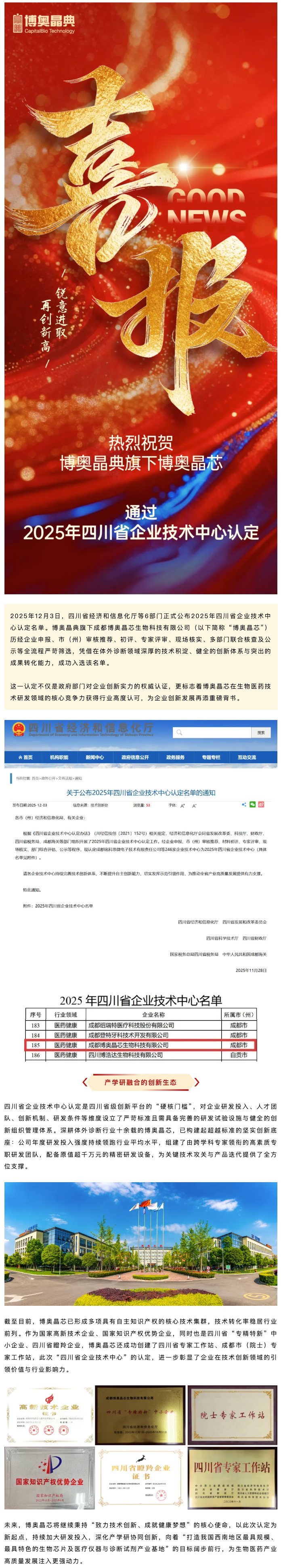 喜讯丨美高梅(MGM)1888旗下成都博奥晶芯顺利获得2025年四川省企业技术中心认定