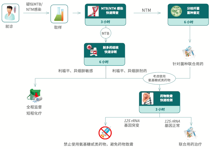 采用双重实时荧光PCR技术和TaqMan探针技术实现对结核分枝杆菌(MTB)和非结核分枝杆菌(NTM)的区分检测。 该试剂盒是现在国内唯一取得CFDA认证的可以快速区分结核分枝杆菌和非结核分枝杆菌感染的PCR产品。