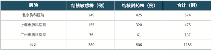 北京胸科医院、上海市肺科医院和广州市胸科医院共1186例样本临床验证